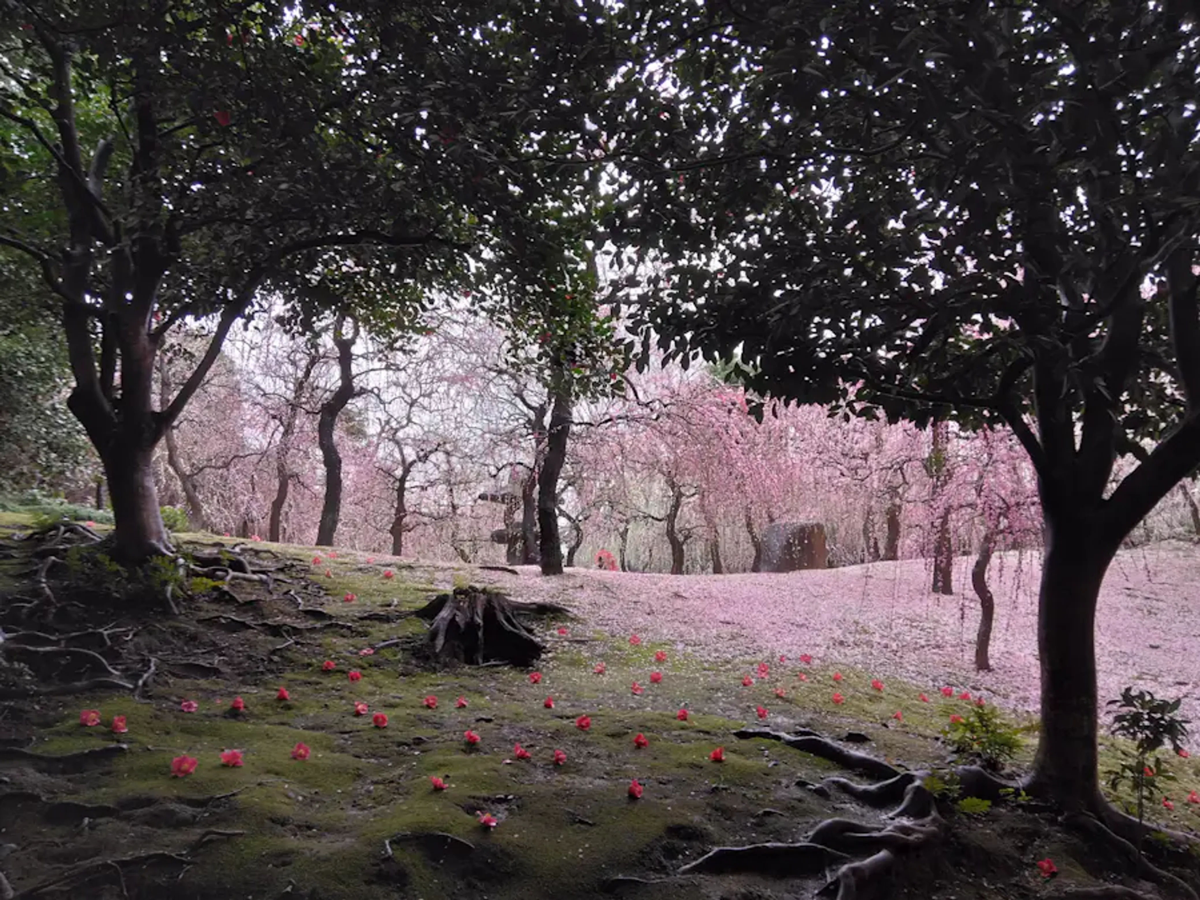 満開後の雨日だったので、花もまだ咲いているし散った花びらも見れるしで、絶好のタイミングだったようです。