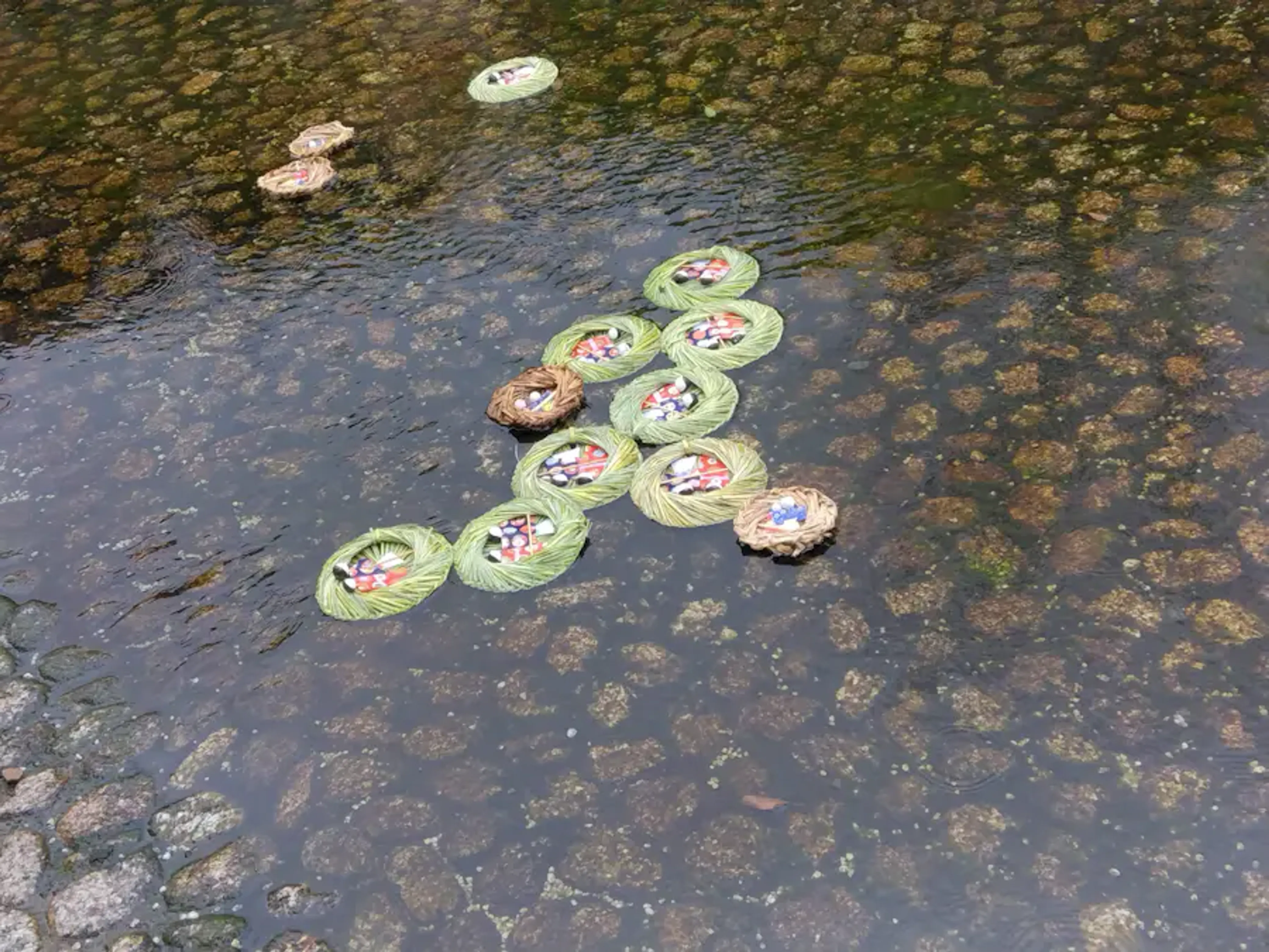 そして、流し場にて持参していたひなを1年分の厄もろとも放流します。1年ありがとうございました。