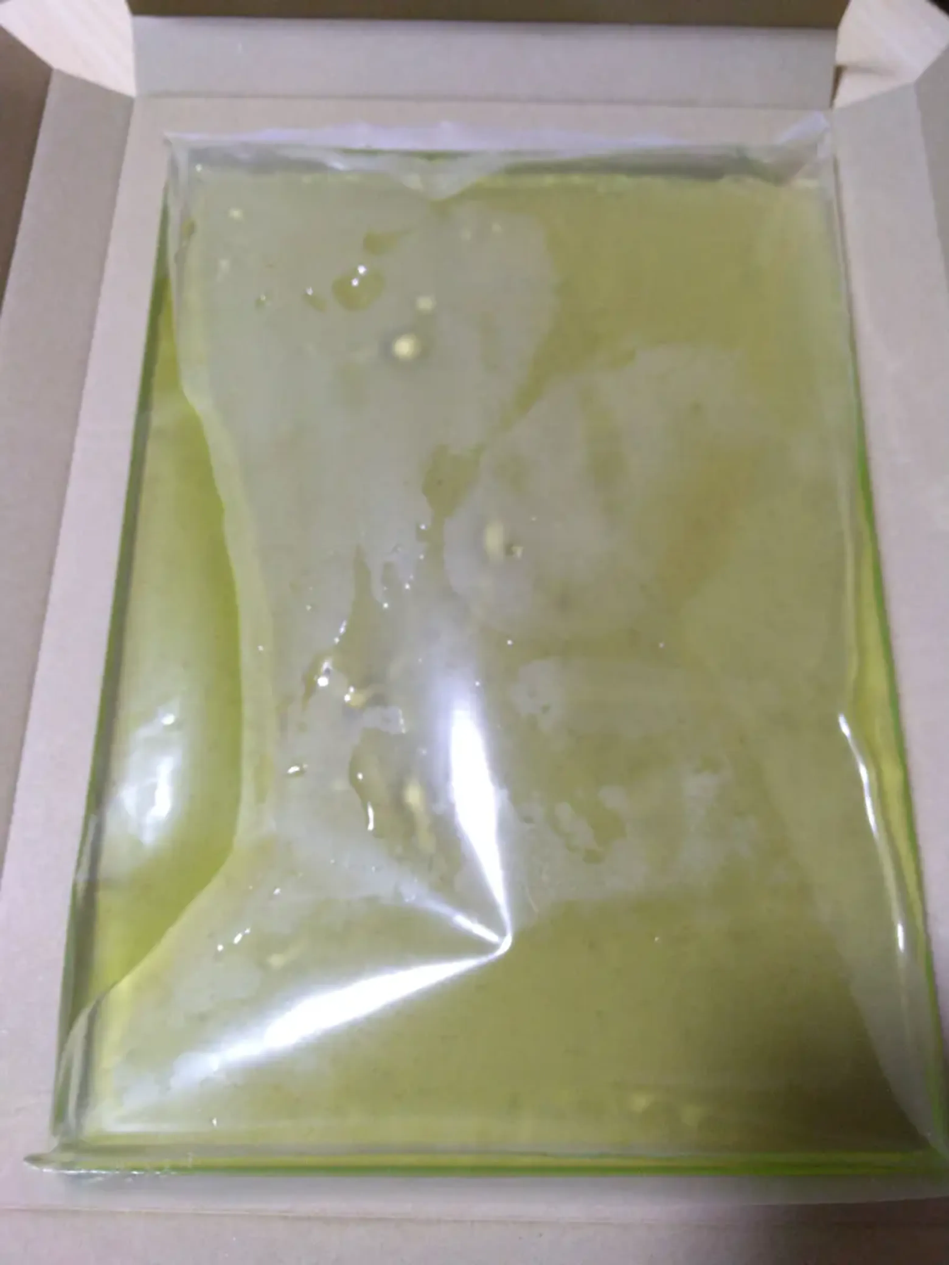 開封時ひと目見て、バイオテロという言葉がよぎりましたが、目に鮮やかな緑色の液体はクロレラとのことです。