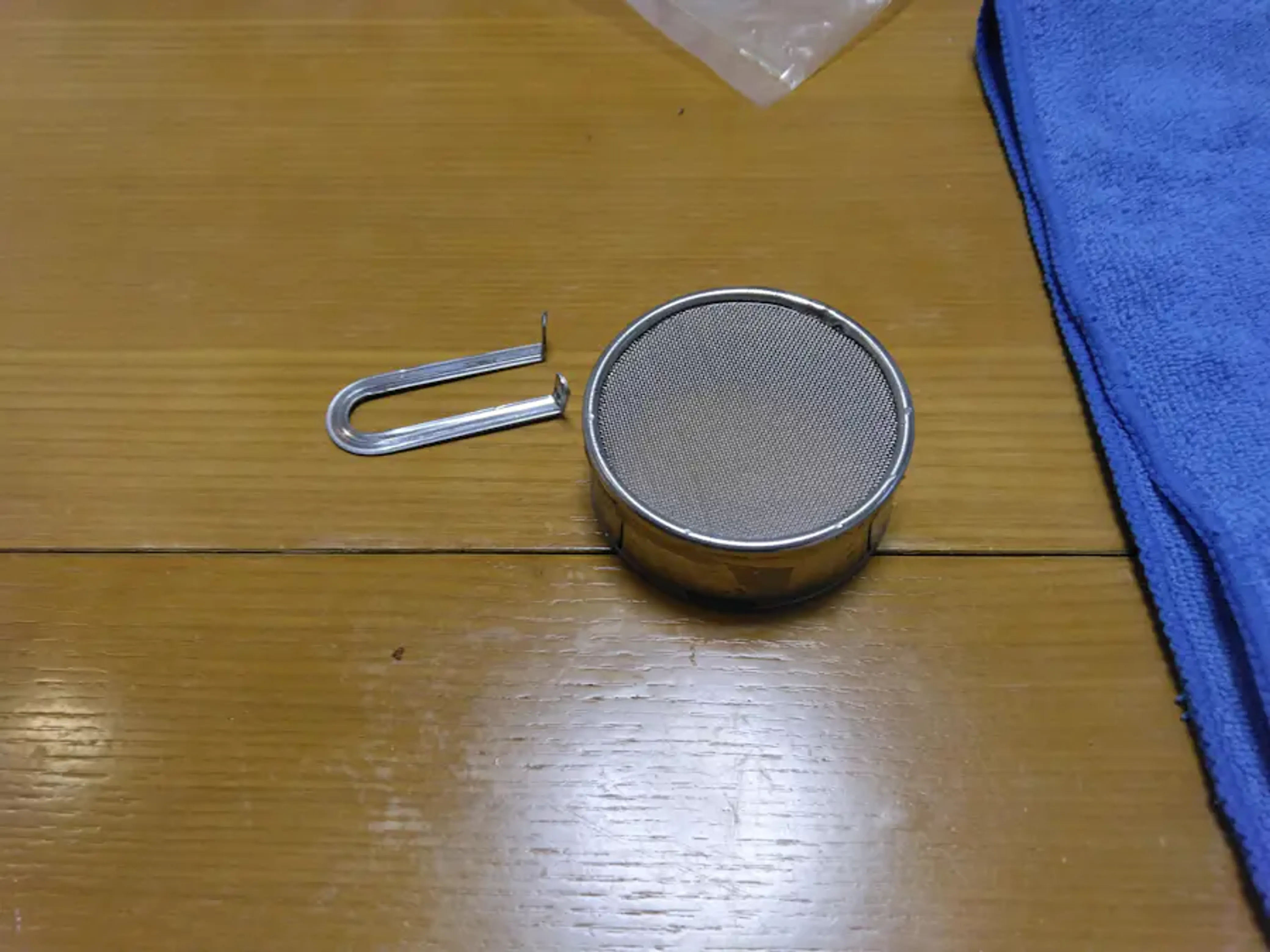 まずは持っていたお魚用の網で掬ったりしてみたのですが、取り回しが悪すぎました。ということで100均に行き、粉ふるいを買ってきました。