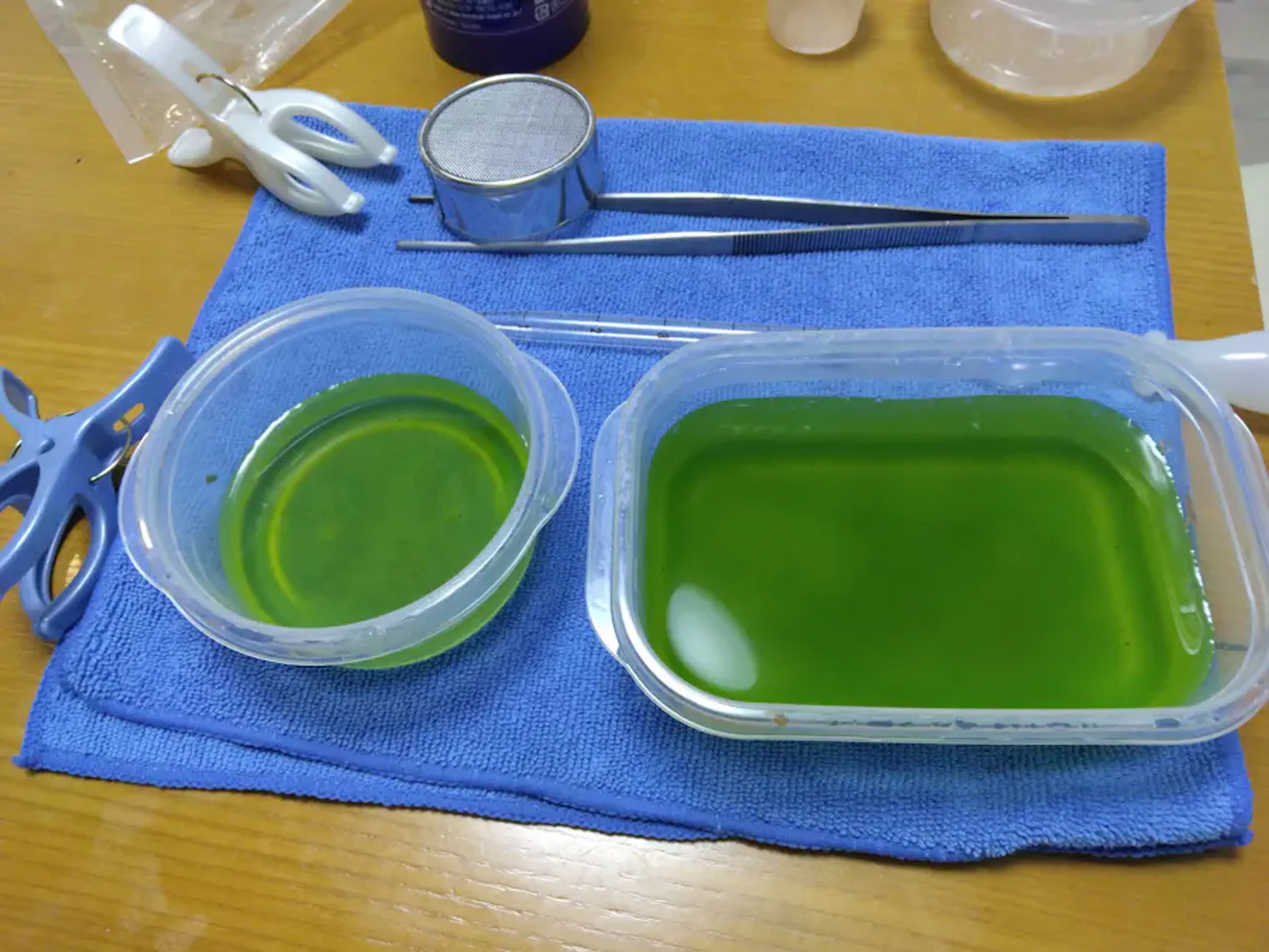 水槽に直接入れるには流石に緑すぎるぜと思ったため、ミジンコだけ掬い出して移すことにしました。