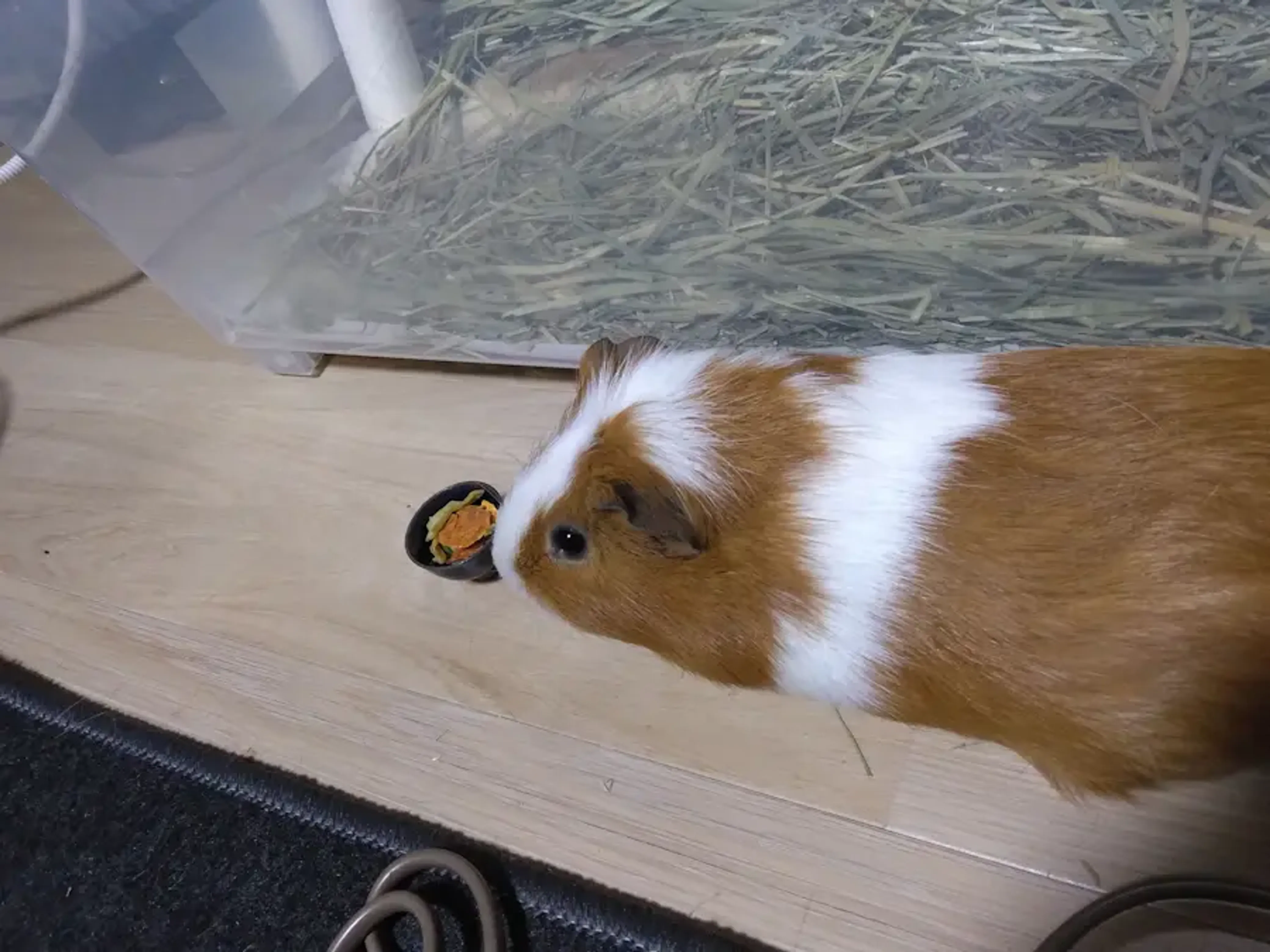 せっかくなのでミニお茶碗に入れてみましたが、モル小屋の外に出てもらったので緊張したのでしょうか、食べませんでした。